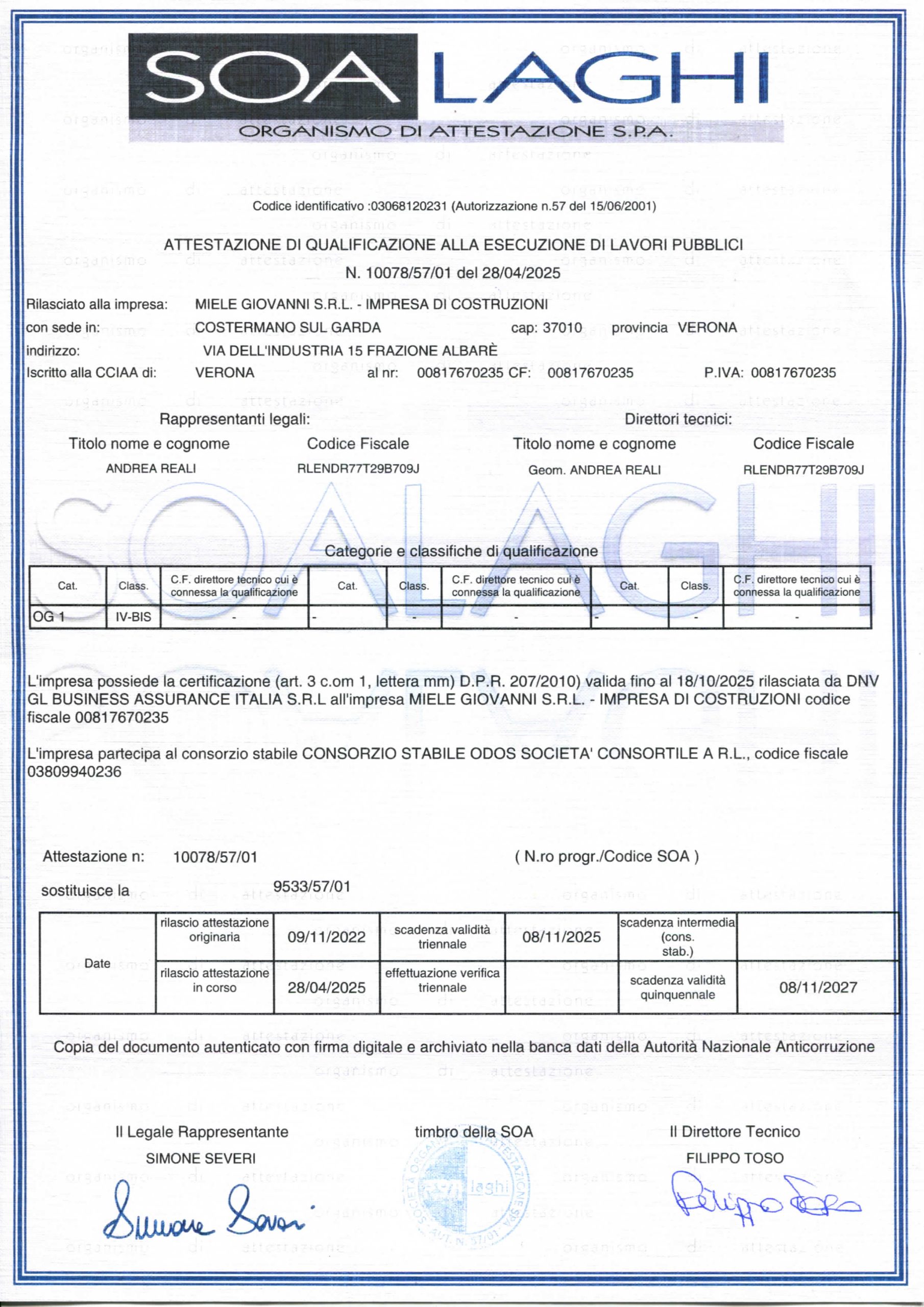 Le certificazioni riflettono lo spirito organizzativo di un’impresa e in Miele Costruzioni nulla è lasciato al caso.